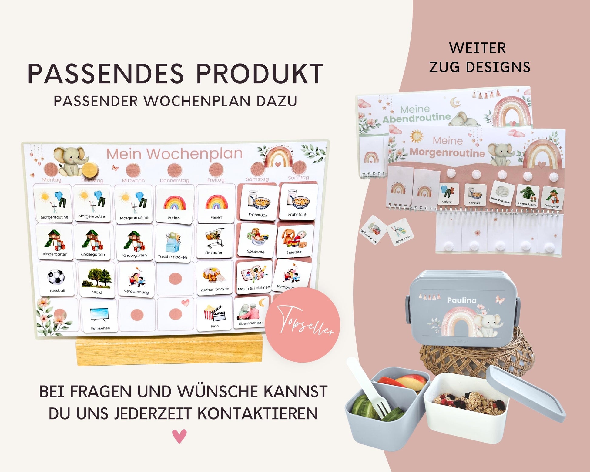 ✔ 1x laminiertes DIN A4-Blatt als Wochenplan-Verlängerung