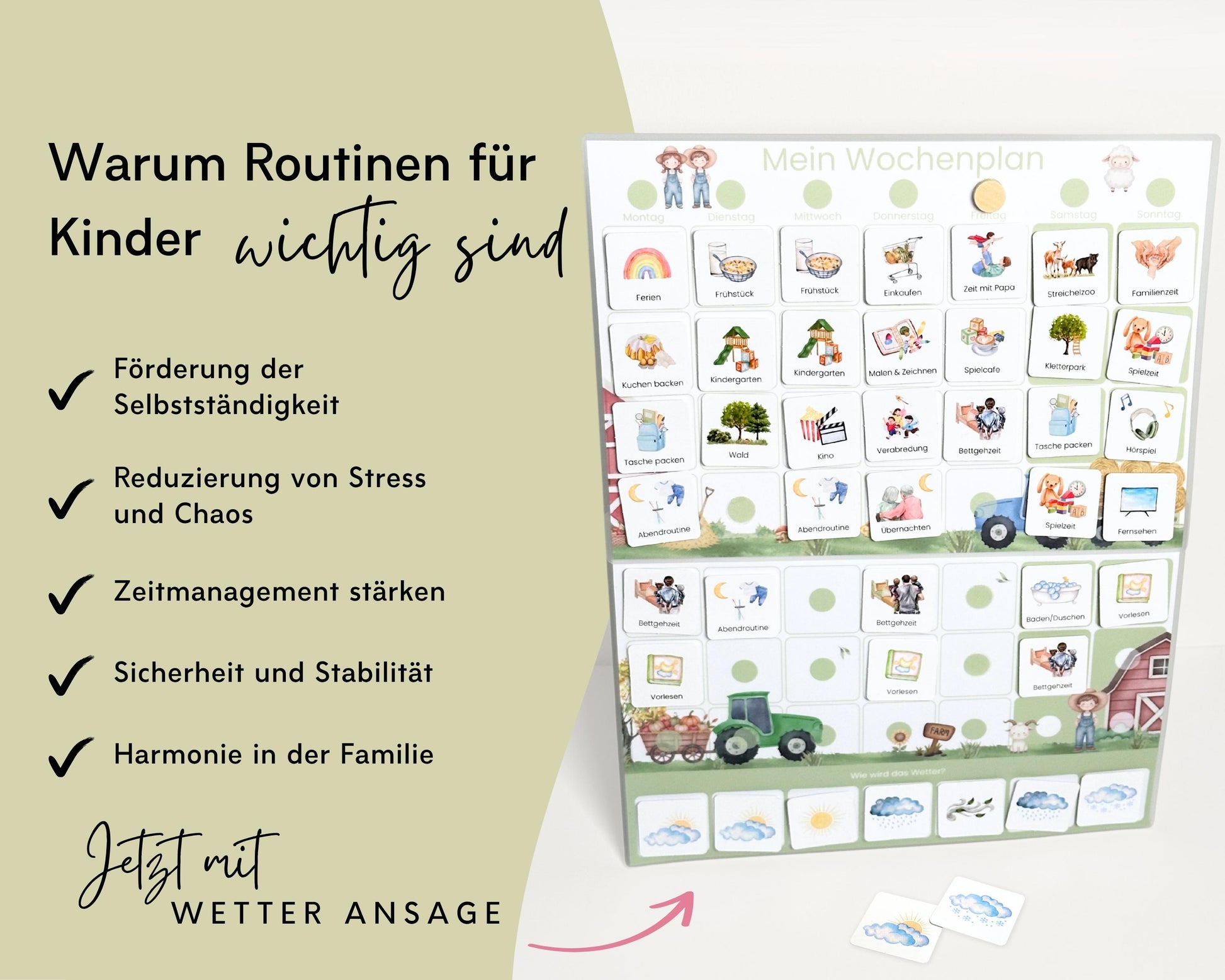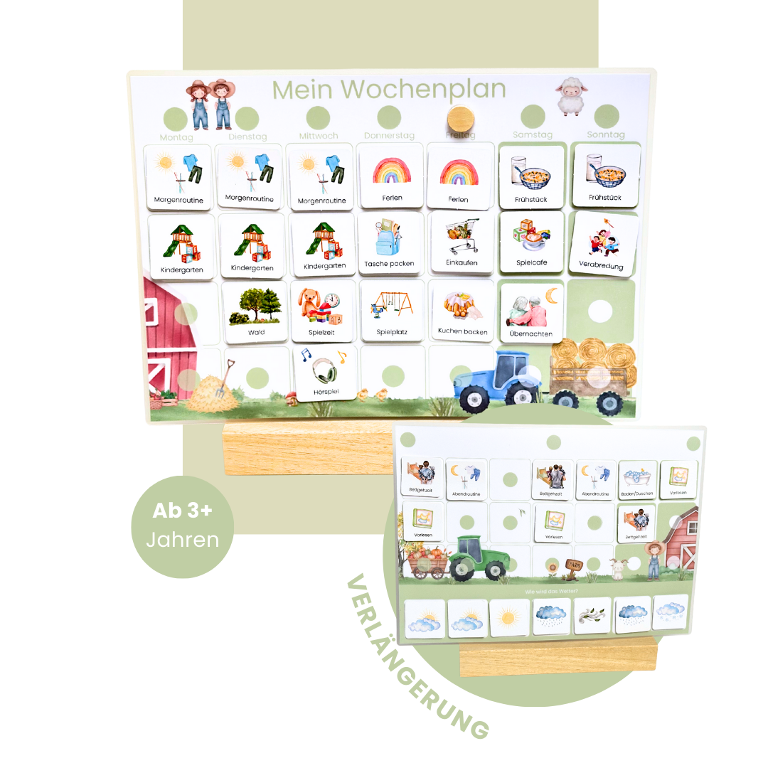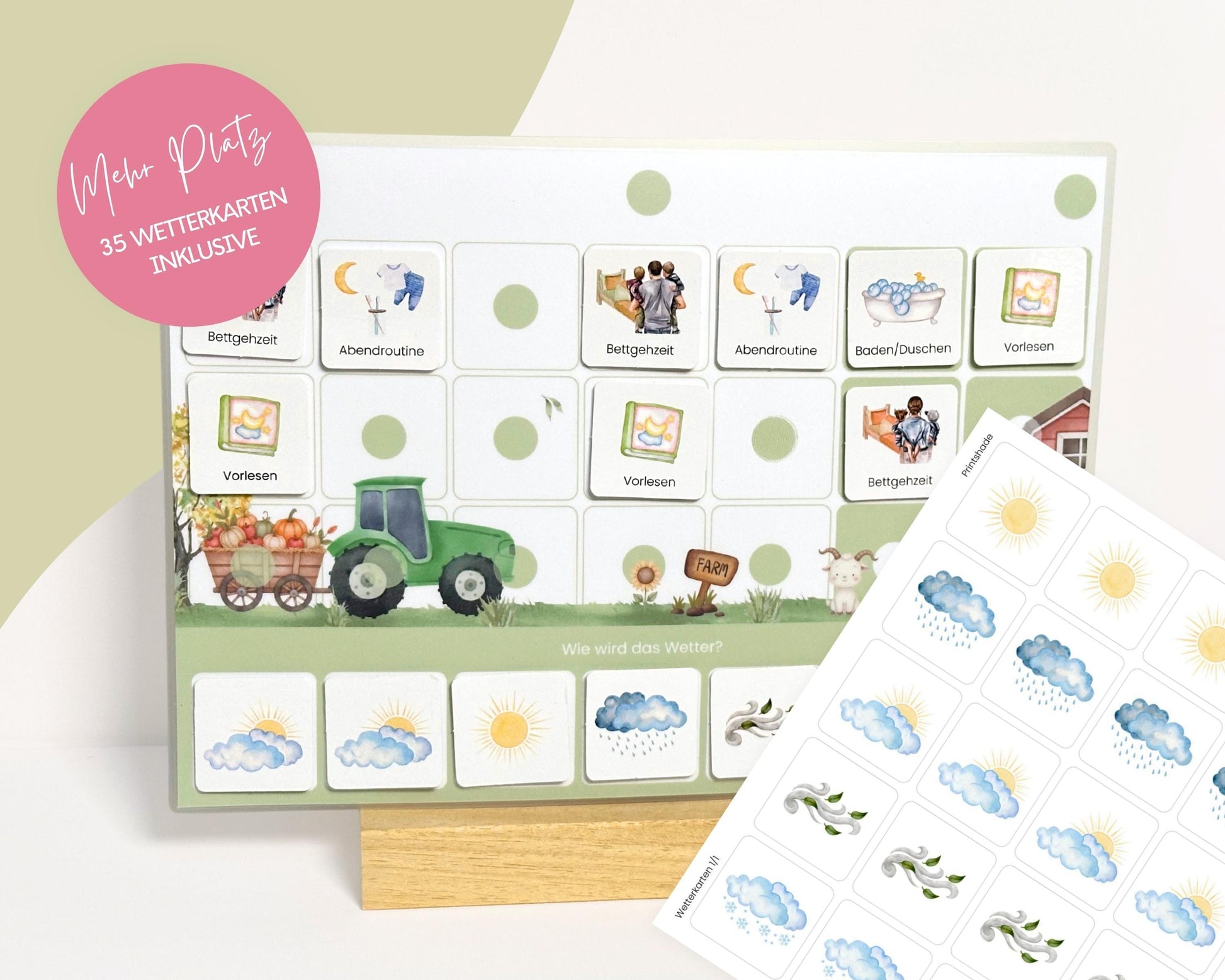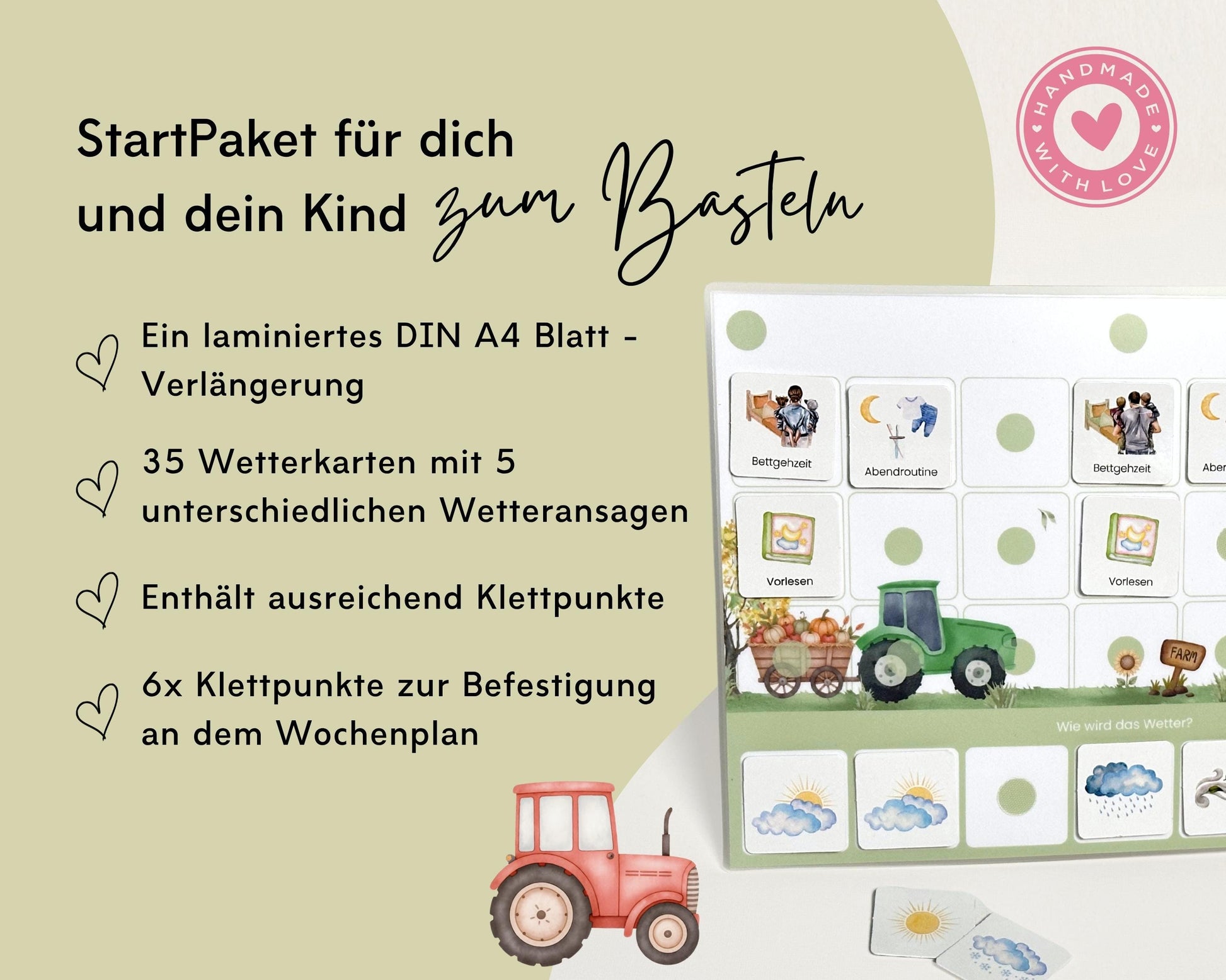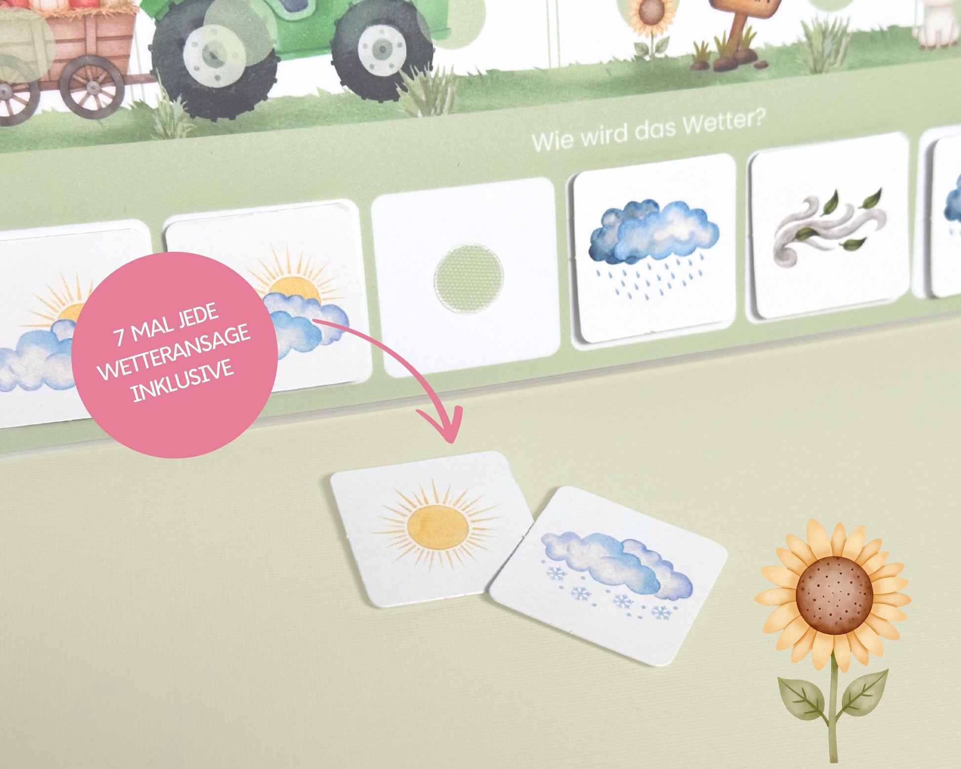Wochenplan-Verlängerung TRAKTOR BAUERNHOF mit Wetteranzeige | 35 Wetterkarten + Klettpunkte | Ergänzungs-Set für Wochenplan Kinder