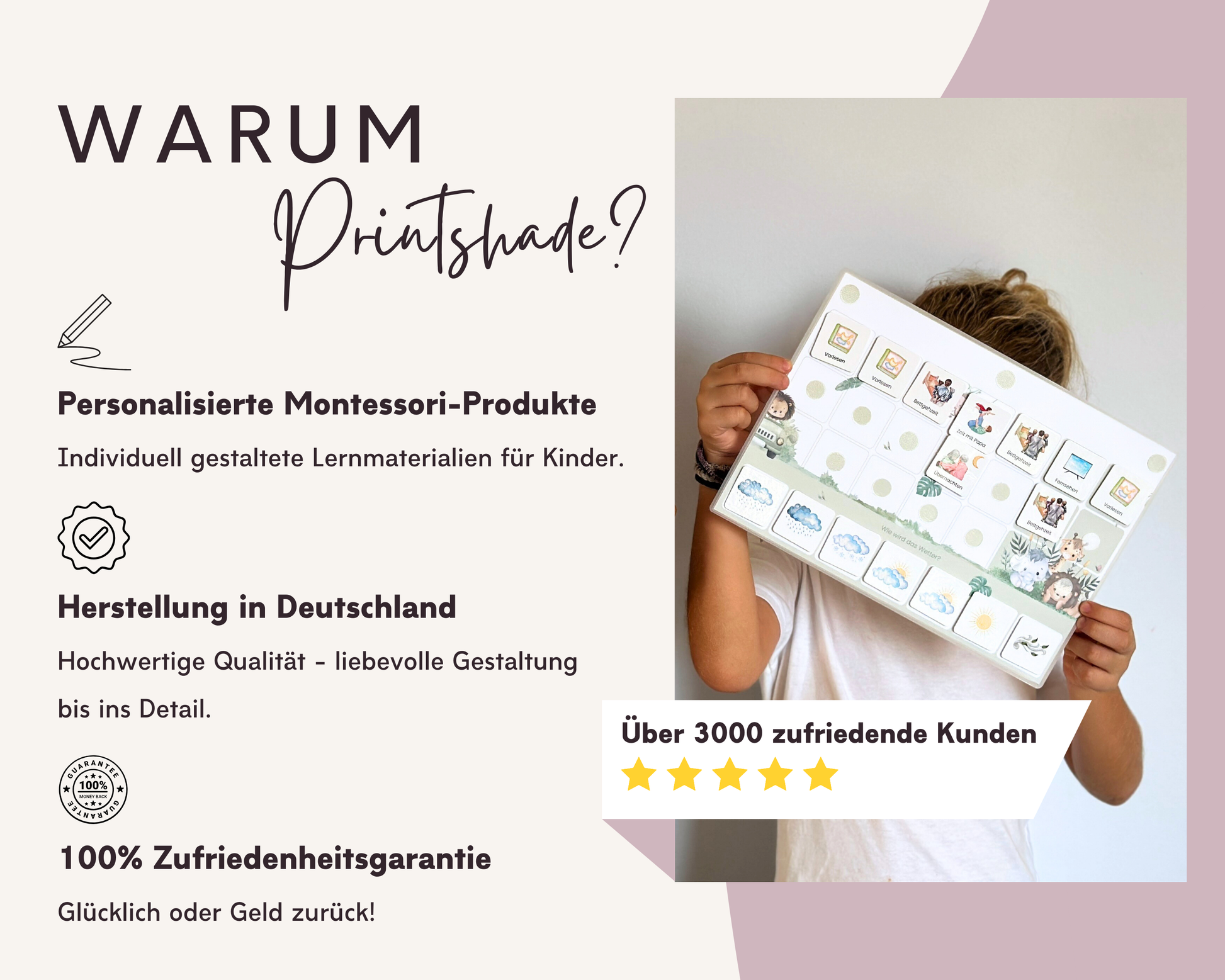 Unsere Produkte sind ideal ab ca. 2,5 bis 3 Jahren, wenn dein Kind beginnt, Zusammenhänge zu erkennen und erste Abläufe zu verstehen. Jedes Kind ist anders – du kannst also ganz individuell entscheiden, wann der richtige Zeitpunkt ist.